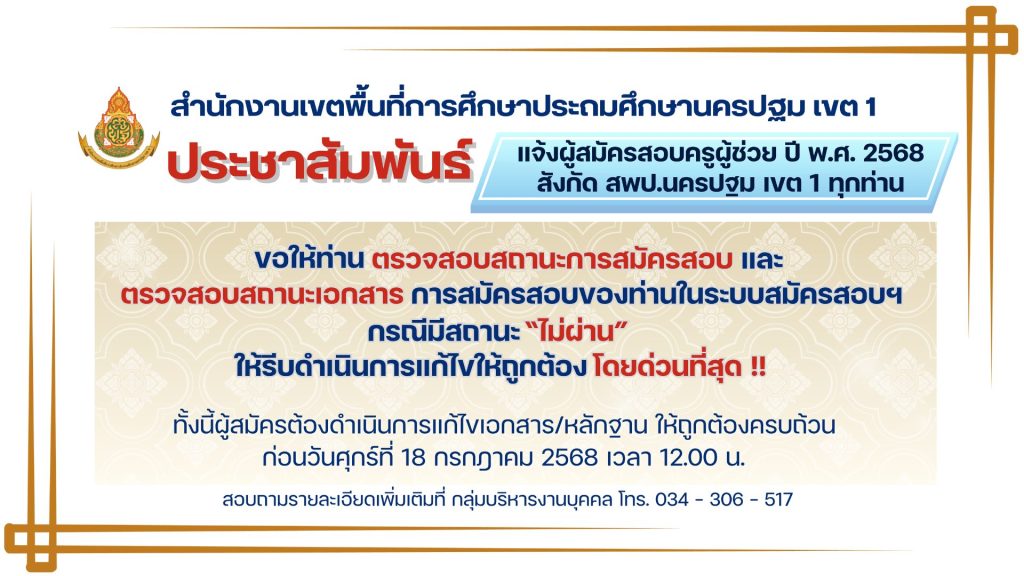 ประกาศตำแหน่งว่างผู้บริหารสถานศึกษา (เพิ่มเติมครั้งที่ 1)