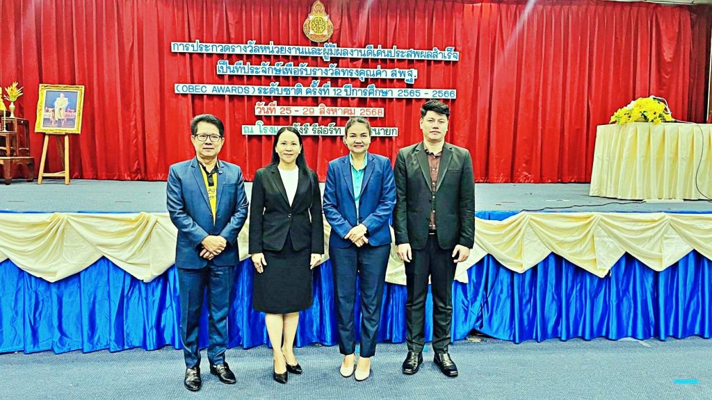วันที่ 27 สิงหาคม 2568 เวลา 09.00 น ดร.ณัฎฐิกา ลิ้มเฉลิม ผู้อำนวยการสำนักงานเขตพื้นที่การศึกษาประถมศึกษานครปฐม เขต 1 ร่วมเป็นคณะกรรมการตัดสิน การประกวดหน่วยงานและผู้มีผลงานดีเด่นประสพผลสำเร็จเป็นที่ประจักษ์ เพื่อรับรางวัลทรงคุณค่า สพฐ. (OBEC AWARDS) ระดับชาติ ครั้งที่ 12 ประจำปีการศึกษา 2565 – 2566 เพื่อยกย่องเชิดชูเกียรติให้เป็นแบบอย่างที่ดีของข้าราชการและบุคคลทั่วไป รวมทั้งสร้างแรงจูงใจในการพัฒนาคนให้มีประสิทธิภาพ โดยจัดขึ้นระหว่างวันที่ 25 – 29 สิงหาคม 2568 ณ โรงแรมวังรี รีสอร์ท จังหวัดนครนายก