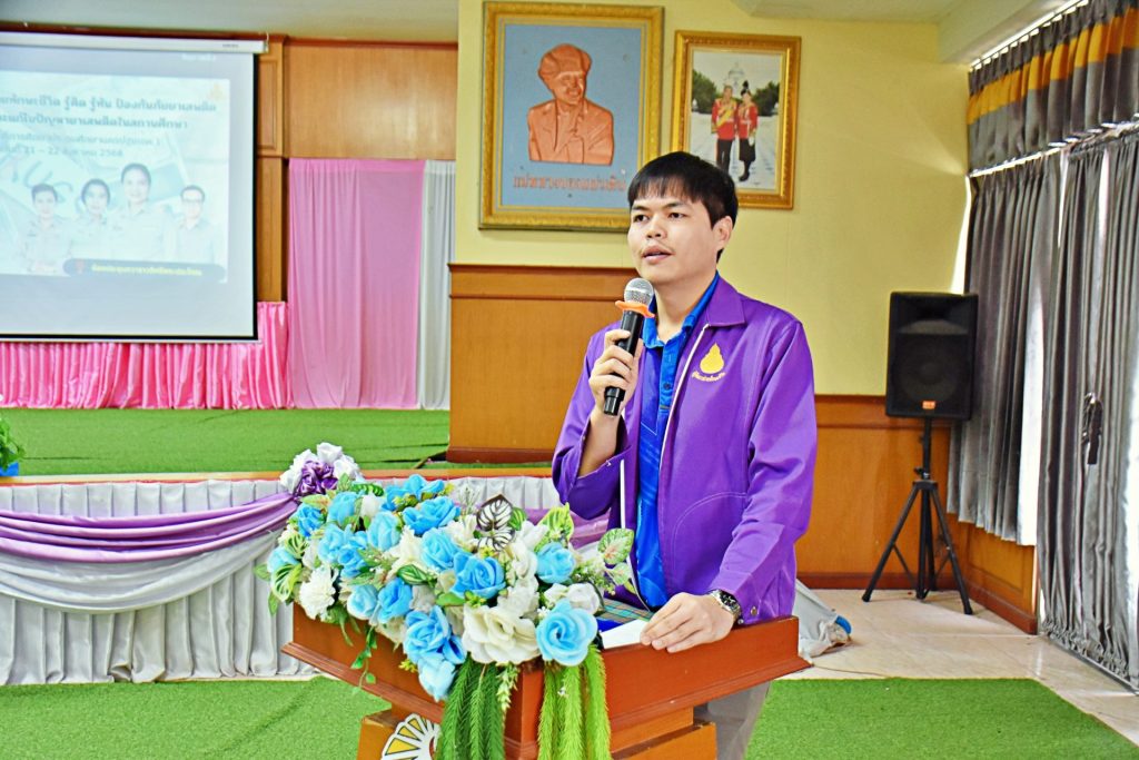 วันพฤหัสบดีที่ 21 สิงหาคม 2568 เวลา 09.00 น. ณ ห้องประชุมทวารวดีศรีพระประโทณ โรงเรียนวัดพระประโทณเจดีย์จังหวัดนครปฐม ดร.ณัฎฐิกา ลิ้มเฉลิม ผู้อำนวยการสำนักงานเขตพื้นที่การศึกษาประถมศึกษานครปฐม เขต 1 มอบหมายให้ นางสาวฐาปณี พวงงาม รองผู้อำนวยการสำนักงานเขตพื้นที่การศึกษาประถมศึกษานครปฐม เขต 1 เป็นประธานเปิดการประชุมเชิงปฏิบัติการค่ายทักษะชีวิต รู้คิด รู้ทัน ป้องกันยาเสพติด ในโครงการป้องกันและแก้ไขปัญหายาเสพติดในสถานศึกษา ในการนี้มี นางสาวสุกฤตภัทร ใจรื่น ผู้อำนวยการกลุ่มส่งเสริมการจัดการศึกษา ในนามคณะกรรมการจัดประชุมฯ กล่าวรายงาน โดยมีวัตถุประสงค์ เพื่อให้ผู้เรียนเกิดการเรียนรู้อย่างมีคุณภาพ มีความสุข ได้รับการปกป้องคุ้มครองความปลอดภัยทั้งร่างกายและจิตใจ รวมถึงการสร้างทักษะให้ผู้เรียนสามารถดูแลตนเองจากภัยต่างๆ โดยเฉพาะด้านยาเสพติดนับเป็นภัยคุกคามอย่างหนึ่งที่ต้องป้องกันเฝ้าระวังและแก้ไขปัญหาร่วมกัน การเสริมสร้างทักษะชีวิตการให้ความรู้ถึงโทษ พิษภัยยาเสพติดหรือพฤติกรรมเสี่ยงต่างๆ สามารถสอดแทรกบูรณาการเนื้อหาเข้าสู่กระบวนการกิจกรรมการเรียนรู้ ให้กับนักเรียนโรงเรียนขยายโอกาสทางการศึกษา ระดับชั้นมัธยมศึกษาปีที่ 1- 2 จำนวน 19 โรงเรียน ๆ ละ 4 คน และครูผู้รับผิดชอบ รวมทั้งสิ้นจำนวน 95 คน โดยได้รับความอนุเคราะห์วิทยากรจาก สถานีตำรวจภูธรเมืองนครปฐม สถานีตำรวจภูธรบางเลน สำนักงานสาธารณสุขจังหวัดนครปฐม สพม.กรุงเทพมหานคร เขต 1 และ สพป.นครสวรรค์ เขต 3 ที่มีความรู้ ความสามารถและประสบการณ์ในการจัดกิจกรรม เพื่อให้มีความรู้ ความเข้าใจ รวมทั้งสร้างเสริมศักยภาพการเป็นผู้นำในการป้องกันและแก้ไขปัญหายาเสพติด ตลอดจนทักษะในการดำเนินชีวิต