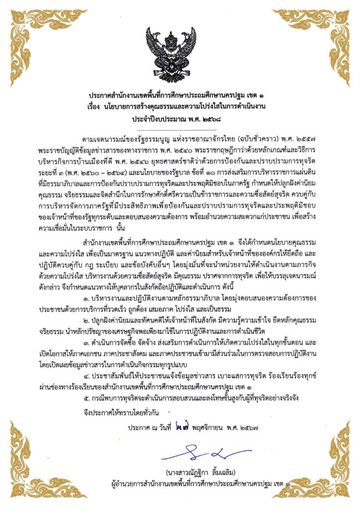 ประกาศนโยบายคุณธรรมและความโปร่งใส