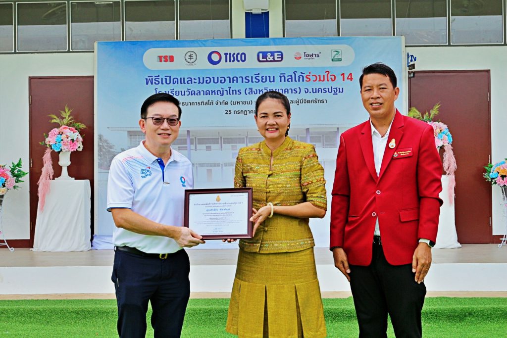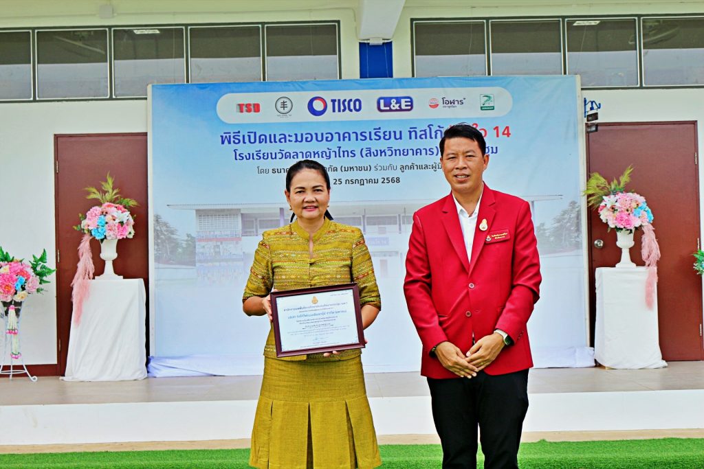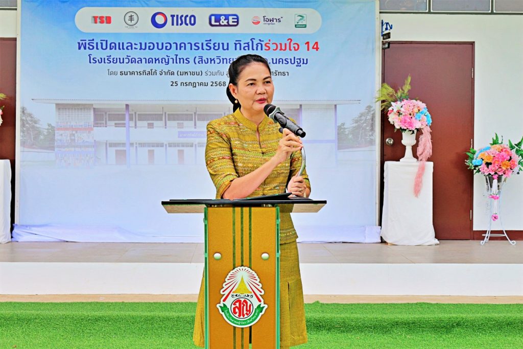 วันศุกร์ที่ 25 กรกฎาคม 2568 เวลา 10.00 น. ดร.ณัฎฐิกา ลิ้มเฉลิม ผู้อำนวยการสำนักงานเขตพื้นที่การศึกษาประถมศึกษานครปฐม เขต 1 เป็นประทานในพิธีส่งมอบอาคารเรียน และมอบเกียรติบัตรให้กับผู้สนับสนุนงบประมาณในการก่อสร้างอาคารเรียน “อาคารทิสโก้ร่วมใจ 14” จำนวน 15 ราย ของโรงเรียนวัดลาดหญ้าไทร (สิงหวิทยาคาร) โดยมี นายพิสิษฐ์ ประวัติวัชรา ผู้อำนวยการโรงเรียนวัดลาดหญ้าไทร (สิงหวิทยาคาร) กล่าวรายงาน พร้อมด้วย คณะกรรมการสถานศึกษา ครู และนักเรียน ให้การต้อนรับในครั้งนี้