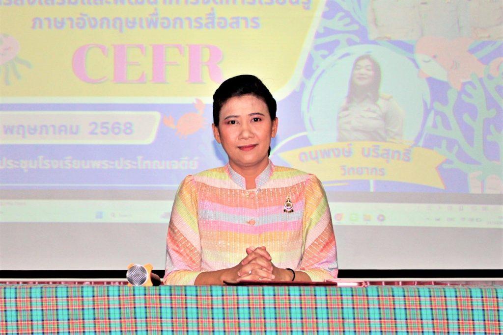 วันพุธที่ 14 พฤษภาคม 2568 เวลา 09.00 น. ดร.ณัฎฐิกา ลิ้มเฉลิม ผู้อำนวยการสำนักงานเขตพื้นที่การศึกษาประถมศึกษานครปฐม เขต 1 มอบหมายให้ นางพิลาศลักษณ์ จงตระการสมบัติ รองผู้อำนวยการสำนักงานเขตพื้นที่การศึกษาประถมศึกษานครปฐม เขต 1 เป็นประธานในพิธีเปิดการอบรมเชิงปฏิบัติการส่งเสริม และพัฒนาการจัดการเรียนรู้ภาษาอังกฤษ เพื่อการสื่อสารตามกรอบ CEFR โดยมี นางจรรยาพร ยอดแก้ว ผู้อำนวยการกลุ่มนิเทศติดตามและประเมินผลการจัดการศึกษา ในนามของฝ่ายจัดการอบรมฯ กล่าวรายงาน มีวัตถุประสงค์ เพื่อส่งเสริมให้ครูผู้สอนวิชาภาษาอังกฤษ มีทักษะภาษาอังกฤษที่พร้อมในการสอบ THE CEFR เพื่อส่งเสริมให้สถานศึกษาในสังกัด สพป.นครปฐม เขต 1 มีวิธีการปฏิบัติที่เป็นเลิศในการจัดการเรียนรู้ภาษาอังกฤษตามกรอบ THE CEFR ของสถานศึกษา ในการนี้มี ครูผู้สอนวิชาภาษาอังกฤษ โรงเรียนละ 1 คน เข้าร่วมการอบรมฯในครั้งนี้ จำนวน 121 คน ณ ห้องประชุมทวารวดีศรีพระประโทน โรงเรียนวัดพระประโทณเจดีย์ อำเภอเมืองนครปฐม จังหวัดนครปฐม