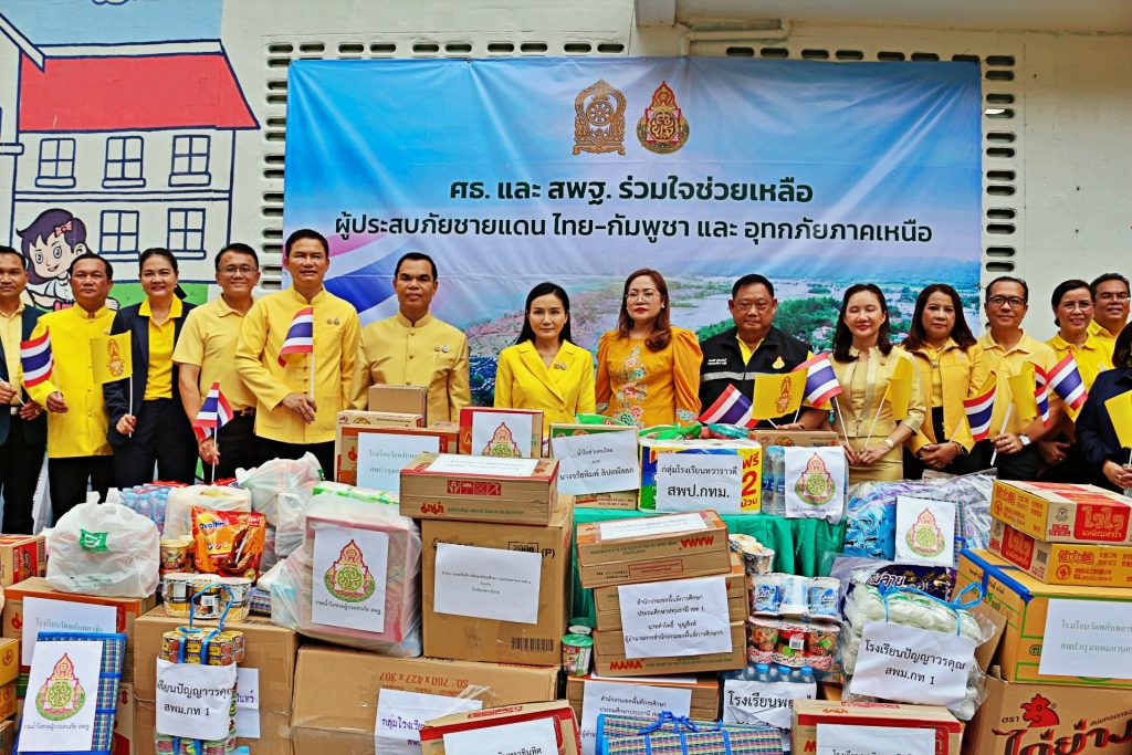 ด้านว่าที่ร้อยตรี ธนุ กล่าวว่า สำหรับผลกระทบและความเสียหายต่อหน่วยงานในสังกัด จากข้อมูลล่าสุดพบว่าเหตุการณ์ความไม่สงบชายแดนไทย-กัมพูชา มีเขตพื้นที่และสถานศึกษาได้รับผลกระทบ รวม 1,173 แห่ง แบ่งเป็น สำนักงานเขตพื้นที่การศึกษาประถมศึกษา จำนวน 11 แห่ง สำนักงานเขตพื้นที่การศึกษามัธยมศึกษา จำนวน 5 แห่ง และสถานศึกษาในสังกัด จำนวน 1,157 แห่ง ขณะที่เหตุการณ์อุทกภัย (พายุวิภา) มีเขตพื้นที่และสถานศึกษาได้รับผลกระทบ รวม 173 แห่ง แบ่งเป็น สำนักงานเขตพื้นที่การศึกษาประถมศึกษา จำนวน 15 แห่ง สำนักงานเขตพื้นที่การศึกษามัธยมศึกษา จำนวน 4 แห่ง และสถานศึกษาในสังกัด จำนวน 154 แห่ง อีกทั้งยังได้ส่งผลกระทบต่อความเป็นอยู่ของนักเรียน ผู้ปกครอง ผู้บริหารสถานศึกษา ครูและบุคลากรทางการศึกษา ข้าราชการ พนักงานราชการ และลูกจ้าง ทั้งในด้านชีวิต ความปลอดภัย และทรัพย์สิน สพฐ. จึงได้ทำการระดมทุนช่วยเหลือผู้ประสบภัยฯ เพื่อส่งต่อความช่วยเหลือในรูปแบบของสิ่งของจำเป็น อาทิ เครื่องอุปโภคบริโภค ยารักษาโรค และเวชภัณฑ์ ตลอดจนการสนับสนุนกำลังใจ เพื่อให้ความช่วยเหลือและเข้าถึงผู้ได้รับผลกระทบได้อย่างรวดเร็ว ครอบคลุม และทั่วถึง เพื่อให้เราทุกคนก้าวผ่านห้วงเวลานี้ไปด้วยกัน ด้วยพลังแห่งน้ำใจและความห่วงใยของทุกๆ คน