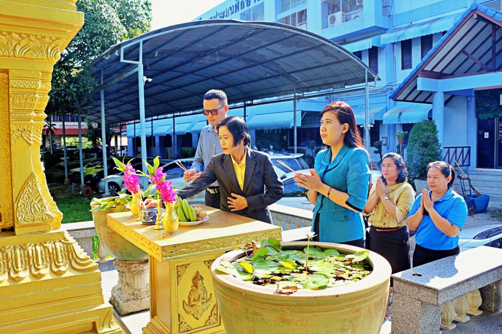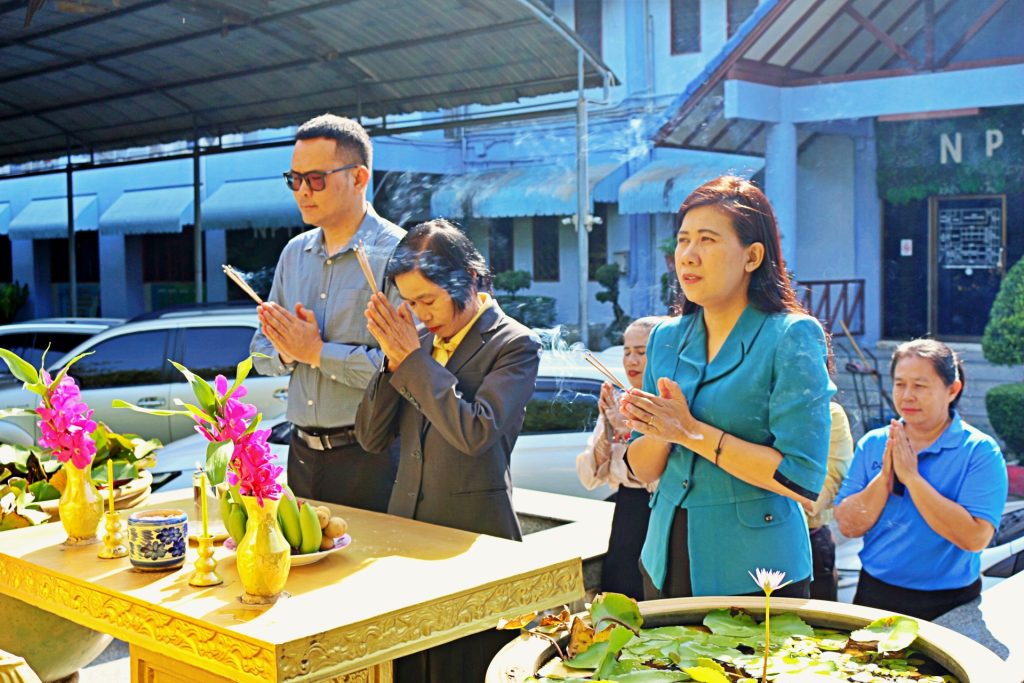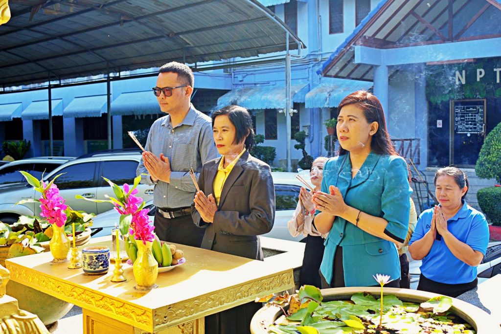 วันศุกร์ที่ 1 สิงหาคม 2568 เวลา 09.00 น. ดร.ฐาปณี พวงงาม รองผู้อำนวยการสำนักงานเขตพื้นที่การศึกษาประถมศึกษานครปฐม เขต 1 พร้อมด้วย นางพิลาศลักษณ์ จงตระการสมบัติ นายวีรยุทธ เวสา รองผู้อำนวยการสำนักงานเขตพื้นที่การศึกษาประถมศึกษานครปฐม เขต 1 นำข้าราชการ และบุคลากรทางการศึกษาใน สพป.นครปฐม เขต 1 ร่วมสวดมนต์ไหว้พระสักการะสิ่งศักดิ์สิทธิ์ประจำ สพป.นครปฐม เขต 1 เพื่อความเป็นสิริมงคล ณ บริเวณซุ้มพระหน้าอาคารสำนักงานฯ และศาลพระภูมิฯ สำนักงานเขตพื้นที่การศึกษาประถมศึกษานครปฐม เขต 1 อำเภอเมืองนครปฐม จังหวัดนครปฐม