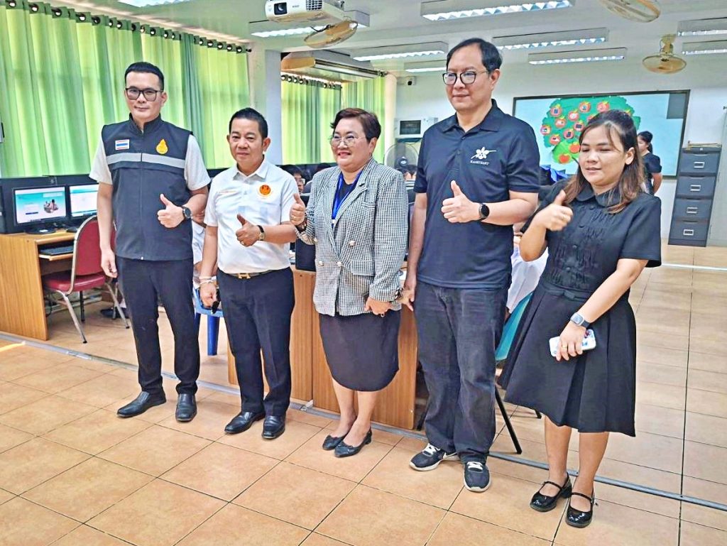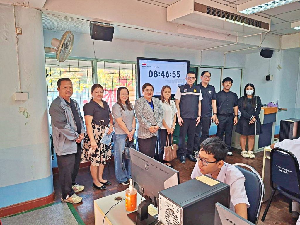 วันที่ ๗ กุมภาพันธ์ ๒๕๖๙  ดร.ณัฎฐิกา ลิ้มเฉลิม ผู้อำนวยการสำนักงานเขตพื้นที่การศึกษาประถมศึกษานครปฐม เขต ๑ มอบหมายให้ นายวีรยุทธ เวสา รองผู้อำนวยการสำนักงานเขตพื้นที่การศึกษาประถมศึกษานครปฐม เขต ๑ ลงพื้นที่ตรวจเยี่ยมการทดสอบทางการศึกษาระดับชาติขั้นพื้นฐาน (O-NET) ระดับชั้นมัธยมศึกษาปีที่ ๓ ด้วยระบบดิจิทัล (Digital Testing) ปีการศึกษา ๒๕๖๘ พร้อมด้วย นางปานทิพย์  ดอนขันไพร และนางสาวบงกช ยิ้มหนองโพธิ์ ศึกษานิเทศก์ชำนาญการพิเศษ สพป.นครปฐม เขต ๑ และคณะผู้ตรวจเยี่ยมสนามสอบฯ เพื่อดำเนินการ ติดตาม ความเรียบร้อย ให้เป็นไปตามมาตรฐานความโปร่งใสและยุติธรรม และให้กำลังใจคณะกรรมการดำเนินการสอบ และนักเรียน โดยมีโรงเรียนขยายโอกาส ในสังกัด สพป.นครปฐม เขต ๑ ในพื้นที่อำเภอกำแพงแสน ได้แก่ โรงเรียนวัดวังน้ำเขียว โรงเรียนวัดบ่อน้ำจืด โรงเรียนวัดทะเลบก โรงเรียนวัดสระสี่มุม โรงเรียนวัดลาดหญ้าแพรก โรงเรียนวัดสองห้อง โรงเรียนวัดหนองศาลา และโรงเรียนวัดหนองโพธิ์ นำนักเรียนชั้นมัธยมศึกษาปีที่ 3 เข้าร่วมการทดสอบฯในครั้งนี้ ณ สนามสอบโรงเรียนสาธิตฯ มหาวิทยาลัยเกษตรศาสตร์ วิทยาเขตกำแพงแสน อำเภอกำแพงแสน จังหวัดนครปฐม