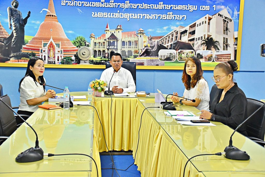 วันอังคารที่ 21 เมษายน 2569 เวลา 09.30 น. ดร.วิเชียร วาพัดไทย ผู้อำนวยการสำนักงานเขตพื้นที่การศึกษาประถมศึกษานครปฐม เขต 1 เป็นประธานการประชุมการพิจารณาคัดเลือกโรงเรียนต้นแบบสภานักเรียน ประจำปี 2569 ระดับเขตพื้นที่การศึกษา ผ่านระบบออนไลน์ พร้อมด้วย นางสาวมลฤดี คำผุย รองผู้อำนวยการสำนักงานเขตพื้นที่การศึกษาประถมศึกษานครปฐม เขต 1 นางสาวสุกฤตภัทร ใจรื่น ผู้อำนวยการกลุ่มส่งเสริมการจัดการศึกษา นางสุดารัตน์ จอมแก้ว ผู้อำนวยการโรงเรียนอินทรศักดิ์ศึกษาลัย (บ้านยาง) และเจ้าหน้าที่กลุ่มส่งเสริมการจัดการศึกษา เข้าร่วมการประชุมฯในครั้งนี้ ณ ห้องประชุมจันหอม ชั้น 2 สำนักงานเขตพื้นที่การศึกษาประถมศึกษานครปฐม เขต 1 อำเภอเมืองนครปฐม จังหวัดนครปฐม