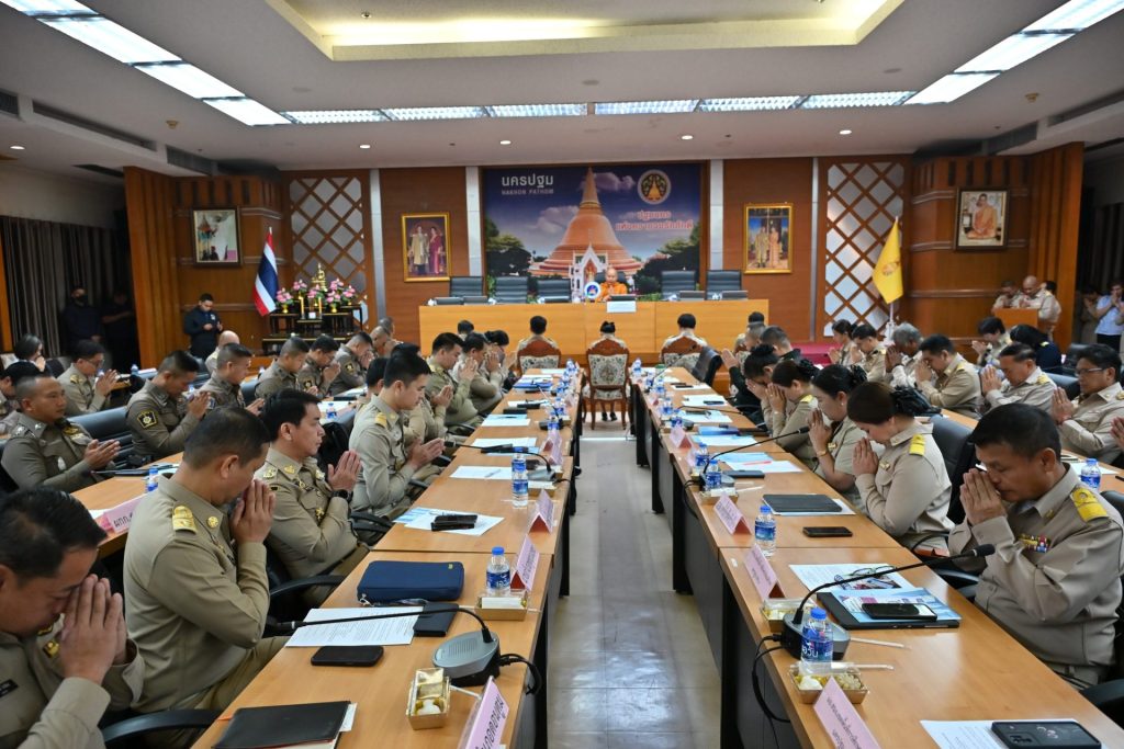 โดยก่อนการประชุม พระศรีวิสุทธิวงศ์ รองเจ้าคณะจังหวัดนครปฐม นำสวดมนต์ไหว้พระ, อาราธนาศีล 5 กล่าวสัมโมทนียกถาให้ข้อคิดหลักธรรม และเจริญจิตตภาวนา ตามโครงการเผยแผ่หลักธรรมทางพระพุทธศาสนาสู่การปฏิบัติในชีวิตประจำวัน แก่ผู้บริหาร หัวหน้าส่วนราชการ หัวหน้าหน่วยงานรัฐวิสาหกิจ ผู้บริหารองค์กรเอกชน ผู้บริหารสถานศึกษา และอื่นๆ ก่อนการประชุมคณะกรมการจังหวัดนครปฐม