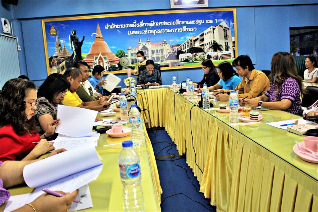 วันพฤหัสบดีที่ 24 เมษายน 2568 เวลา 09.00 น. ดร.ณัฎฐิกา ลิ้มเฉลิม ผู้อำนวยการสำนักงานเขตพื้นที่การศึกษาประถมศึกษานครปฐม เขต 1 เป็นประธานดำเนินการประชุมคณะกรรมการพิจารณากลั่นกรองการเลื่อนเงินเดือนข้าราชการครูและบุคลากรทางการศึกษา ระดับ สพท. ครั้งที่ 1 (1 เมษายน 2568 ) พร้อมด้วย ดร.ฐาปณี พวงงาม รองผู้อำนวยการสำนักงานเขตพื้นที่การศึกษาประถมศึกษานครปฐม เขต 1 ประธานกลุ่มโรงเรียนในสังกัด ผู้อำนวยการกลุ่ม/หน่วย และเจ้าหน้าที่กลุ่มบริหารงานบุคคล ที่เกี่ยวข้อง เข้าร่วมการประชุมฯในครั้งนี้ เพื่อพิจารณากลั่นกรองการเลื่อนเงินเดือนข้าราชการครูและบุคลากรทางการศึกษา ระดับ สพท. ครั้งที่ 1 (1 เมษายน 2568 ) ณ ห้องประชุมจันหอม สพป.นครปฐม เขต 1 อำเภอเมืองนครปฐม จังหวัดนครปฐม