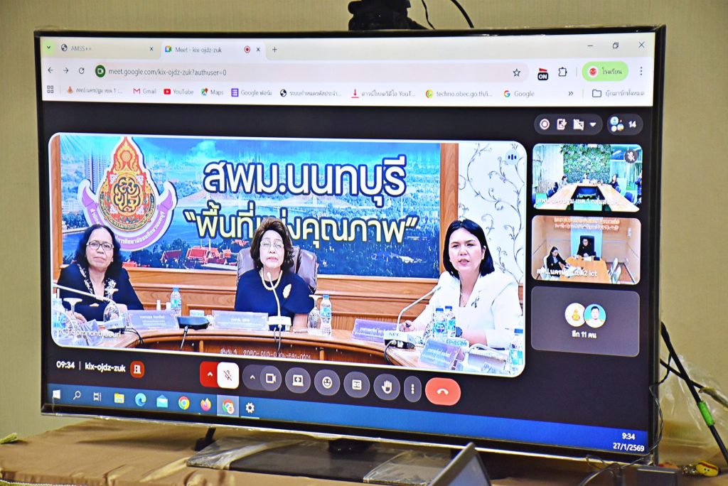 โดยสำนักงานเขตพื้นที่การศึกษามัธยมศึกษานนทบุรี เป็นศูนย์ประสานงานการคัดเลือกนักเรียนและสถานศึกษา เพื่อรับรางวัลพระราชทานระดับการศึกษาขั้นพื้นฐาน ประจำปีการศึกษา ๒๕๖๘ ระดับกลุ่มจังหวัด (กลุ่มจังหวัดที่ ๑) ซึ่งประกอบด้วย จังหวัดนนทบุรี นครปฐม ปทุมธานี สมุทรปราการ และสมุทรสาคร โดยมี นางลำพึง ศรีมีชัย ผู้ทรงคุณวุฒิ สำนักงานคณะกรรมการการศึกษาขั้นพื้นฐาน เป็นประธานการประชุมฯ เพื่อดำเนินงานคัดเลือกนักเรียนและสถานศึกษา เพื่อรับรางวัลพระราชทานระดับการศึกษาขั้นพื้นฐาน ประจำปีการศึกษา ๒๕๖๘ ผ่านระบบออนไลน์ Zoom Meeting