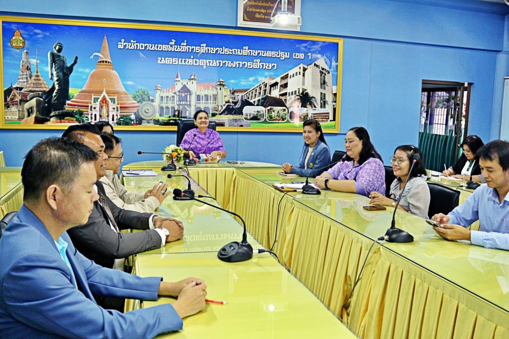 วันพุธที่ 10 กันยายน 2568 เวลา 13.30 น. ดร.ณัฎฐิกา ลิ้มเฉลิม ผู้อำนวยการสำนักงานเขตพื้นที่การศึกษาประถมศึกษานครปฐม เขต 1 เป็นประธานการประชุมคณะทำงานการจัดงานโครงการ Smart Educational Service Area Office: SEASAO GENIUS ZONE EXPO 2025 พร้อมด้วย ดร.ฐาปณี พวงงาม นางพิลาศลักษณ์ จงตระการสมบัติ และ นายวีรยุทธ เวสา รองผู้อำนวยการสำนักงานเขตพื้นที่การศึกษาประถมศึกษานครปฐม เขต 1 ผู้อำนวยการกลุ่ม/หน่วย ประธานกลุ่มโรงเรียน ในสังกัด สพป.นครปฐม เขต 1 เข้าร่วมการประชุมฯในนครั้งนี้ เพื่อเตรียมและหารือการจัดงานโครงการ Smart Educational Service Area Office: SEASAO GENIUS ZONE EXPO 2025 ณ ห้องประชุมจันหอม สำนักงานเขตพื้นที่การศึกษาประถมศึกษานครปฐม เขต ๑ อำเภอเมืองนครปฐม จังหวัดนครปฐม