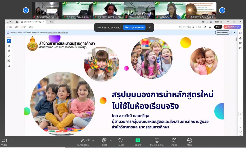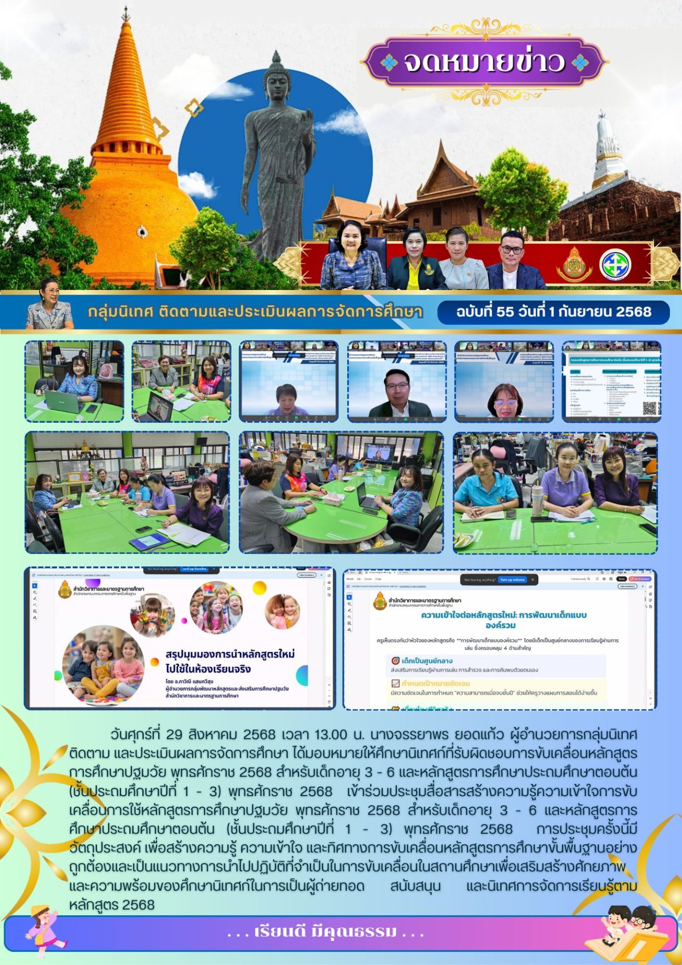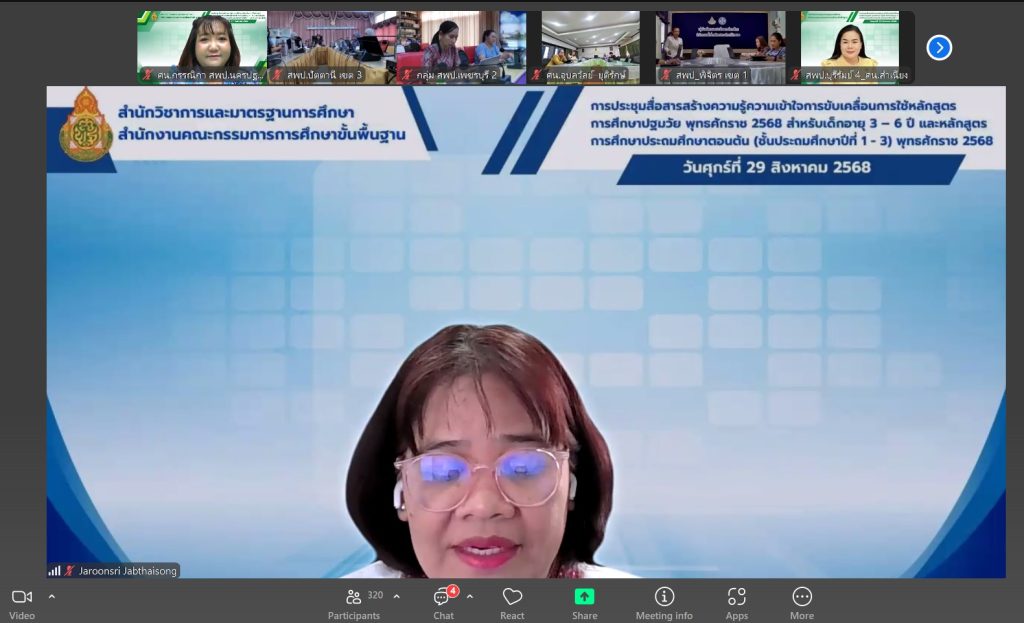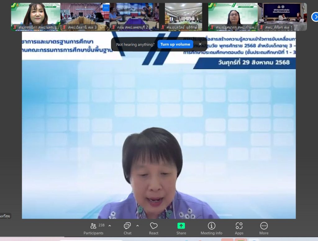 วันศุกร์ที่ 29 สิงหาคม 2568 เวลา 13.00 น. การประชุมสื่อสารสร้างความรู้ความเข้าใจการขับเคลื่อนการใช้หลักสูตรการศึกษาปฐมวัย พุทธศักราช 2568 สำหรับเด็กอายุ 3 3 – 6 และหลักสูตรการศึกษาประถมศึกษาตอนต้น (ชั้นประถมศึกษาปีที่ 1 – 3) พุทธศักราช 2568 เป็นการชี้แจงสิ่งที่เกี่ยวข้องและสำคัญจำเป็นกับศึกษานิเทศก์ที่รับผิดชอบหลักสูตรทั้งระดับปฐมวัยและหลักสูตรประถมศึกษาตอนต้น ซึ่งวัตถุประสงค์ในการประชุมในครั้งนี้ เพื่อสร้างความรู้ ความเข้าใจ และทิศทางการขับเคลื่อนหลักสูตรการศึกษาขั้นพื้นฐานอย่างถูกต้องและเป็นแนวทางการนำไปปฏิบัติที่จำเป็นในการขับเคลื่อนในสถานศึกษาเพื่อเสริมสร้างศักยภาพและความพร้อมของศึกษานิเทศก์ในการเป็นผู้ถ่ายทอด สนับสนุน และนิเทศการจัดการเรียนรู้ตามหลักสูตร 2568