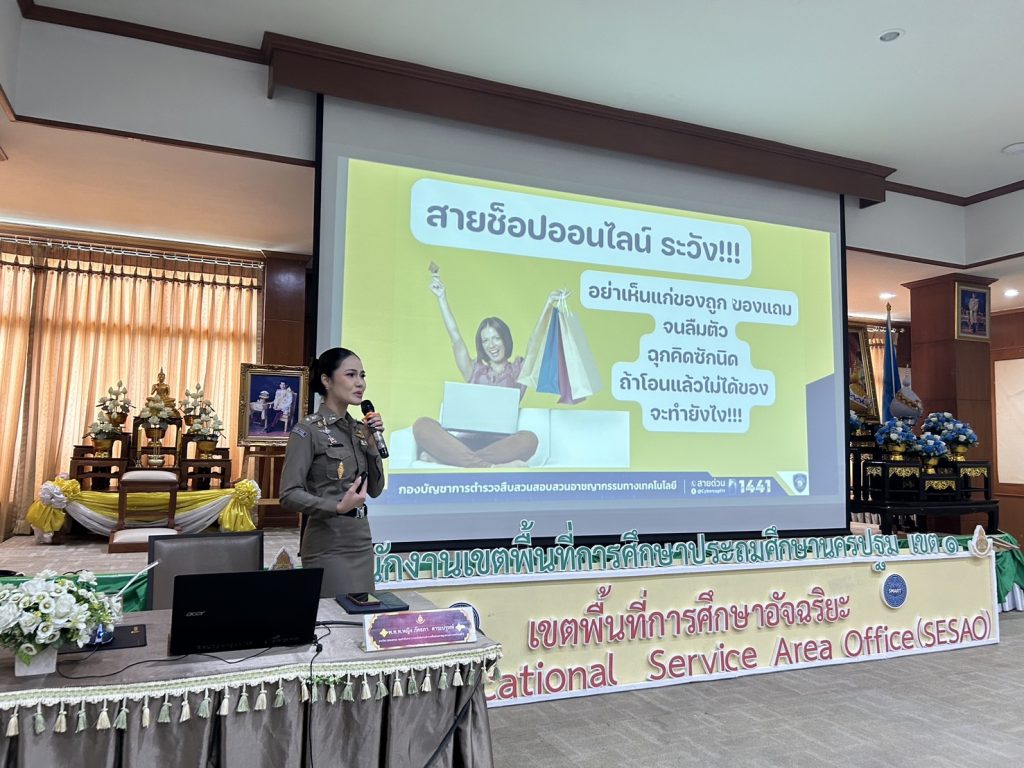 วันศุกร์ที่ 15 สิงหาคม 2568 เวลา 09.30 – 12.00 น. ณ ห้องประชุมพระพรหมเวที สำนักงานเขตพื้นที่การศึกษาประถมศึกษานครปฐม เขต 1 ดร.ณัฎฐิกา ลิ้มเฉลิม ผู้อำนวยการสำนักงานเขตพื้นที่การศึกษาประถมศึกษานครปฐม เขต 1 มอบหมายให้ นายวีรยุทธ เวสา รองผอ.สพป.นครปฐม เขต 1 เป็นประธานการประชุมเชิงปฏิบัติการเสริมสร้างความรู้และความตระหนักด้านความมั่นคงปลอดภัยทางไซเบอร์ โดยมี นางสาวกุลวิภา ชีพรับสุข ปฏิบัติหน้าที่ผู้อำนวยการกลุ่มส่งเสริมการศึกษาทางไกลฯ เป็นผู้ดำเนินการจัดการประชุมฯในครั้งนี้ โดยมีวิทยากร พ.ต.ท.หญิง ภัคธภา ดาระปรุฬห์ สารวัตร (สอบสวน) กองกำกับการ 3 จากกองบัญชาการตำรวจสืบสวนสอบสวนอาชญากรรมทางเทคโนโลยี (ตำรวจไซเบอร์) ซึ่งเนื้อหาในการบรรยายจะมีประโยชน์อย่างมากในการเฝ้าระวังป้องกันต่ออาชญากรรม การโจมตี การบ่อนทำลายและความผิดพลาดต่างๆทางเทคโนโลยี นอกจากนั้นได้มีการถ่ายทอดสดไปยังโรงเรียนในสังกัด 121 โรงเรียน ทางช่อง YouTube NPT1 Channel