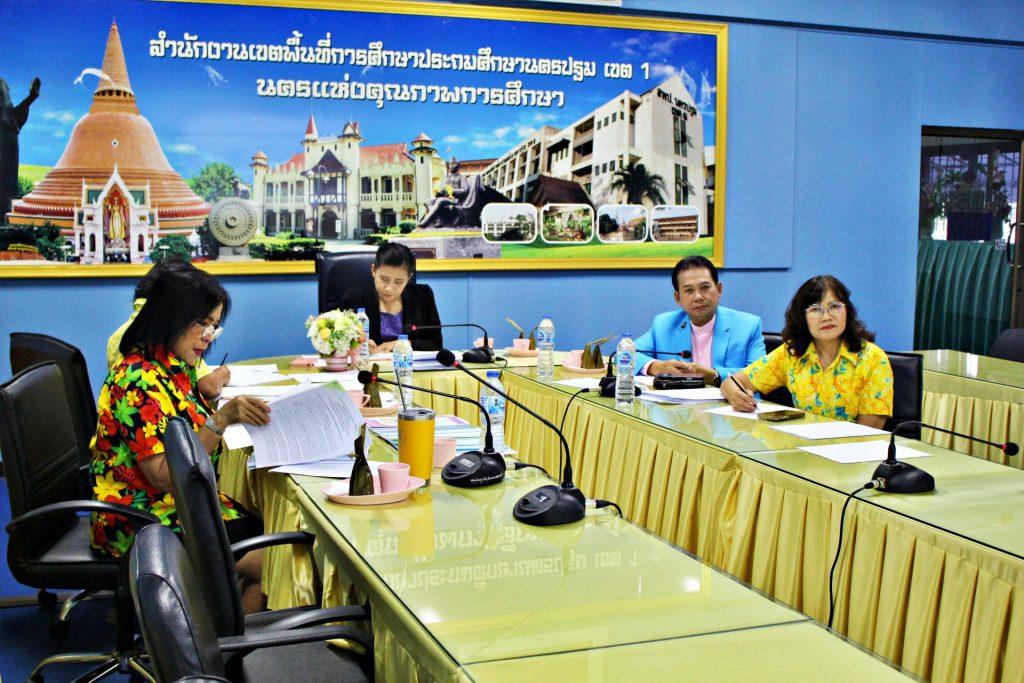 วันพฤหัสบดีที่ 10 เมษายน 2568 เวลา 09.00 น. ดร.ณัฎฐิกา ลิ้มเฉลิม ผู้อำนวยการสำนักงานเขตพื้นที่การศึกษาประถมศึกษานครปฐม เขต 1 มอบหมายให้ นางพิลาศลักษณ์ จงตระการสมบัติ รองผู้อำนวยการสำนักงานเขตพื้นที่การศึกษาประถมศึกษานครปฐม เขต 1 เป็นประธานดำเนินการประเมินประสิทธิภาพและประสิทธิผลการปฏิบัติงานของผู้อำนวยการสถานศึกษา ในกลุ่มโรงเรียนกำแพงแสน 1 และกลุ่มโรงเรียนกำแพงแสน 2 สังกัด สพป.นครปฐม เขต 1 ในการนี้มี นางณฤดี โกยกอบเกีนรติ ผู้ทรงคุณวุฒิ นางอำไพ ลิ้มประสาท ผอ.โรงเรียนวัดไผ่ล้อม นายสมบูรณ์ บุญธรรม ผอ.โรงเรียนวัดพระปฐมเจดีย์ นางวิไล เรียนทัพ ผอ.กลุ่มอำนวยการ เข้าร่วมการประเมินฯในครั้งนี้ ณ ห้องประชุมจันหอม สพป.นครปฐม เขต 1 อำเภอเมีองนครปฐม จังหวัดนครปฐม