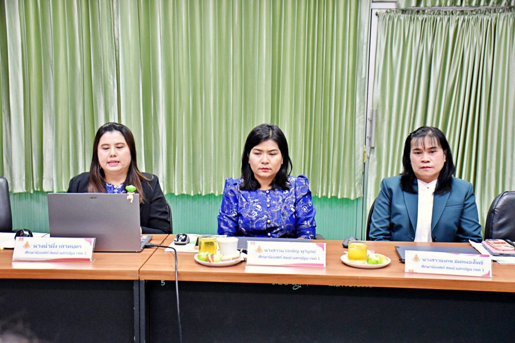 วันพฤหัสบดีที่ 11 กันยายน 2568 เวลา 09.00 น. ดร.ณัฎฐิกา ลิ้มเฉลิม ผู้อำนวยการสำนักงานเขตพื้นที่การศึกษาประถมศึกษานครปฐม เขต 1 เป็นประธานคณะกรรมการประเมินสัมฤทธิผลการปฏิบัติงานในหน้าที่ เพื่อพัฒนาการศึกษา ตำแหน่งศึกษานิเทศก์ (ครั้งที่ 1) โดยมี นายเกรียงศักดิ์ สังข์ชัย ผู้ทรงคุณวุฒิ นางจรรยาพร ยอดแก้ว ผอ.กลุ่มนิเทศ ติดตามและประเมินผลการจัดการศึกษา ร่วมเป็นคณะกรรมการประเมินฯ และมี นางสาวณัฐิกา สุริยาวงษ์ ศึกษานิเทศก์ชำนาญการพิเศษ สพป.นครปฐม เขต 1 เป็นคณะกรรมการที่ปรึกษา/พี่เลี้ยงฯ ในการประเมินฯครั้งนี้ มีผู้รับการประเมินฯ จำนวน 3 คน ได้แก่ นางสาวบงกช ยิ้มหนองโพธิ์ นางสาวนวลเพ็ญ พูวิบูลย์ และนางน้ำผึ้ง เลาหบุตร ศึกษานิเทศก์ชำนาญการพิเศษ ณ ห้องประชุมดอกแก้ว สำนักงานเขตพื้นที่การศึกษาประถมศึกษานครปฐม เขต ๑ อำเภอเมืองนครปฐม จังหวัดนครปฐม