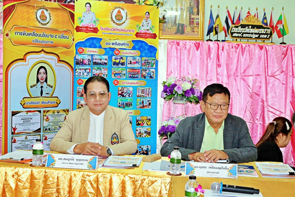 วันพุธที่ 10 กันยายน 2568 เวลา 09.00 น. ดร.ณัฎฐิกา ลิ้มเฉลิม ผู้อำนวยการสำนักงานเขตพื้นที่การศึกษาประถมศึกษานครปฐม เขต 1 เป็นประธานคณะกรรมการประเมินสัมฤทธิผลในการปฏิบัติหน้าที่ เพื่อพัฒนาการศึกษา ตำแหน่งผู้อำนวยการสถานศึกษา สังกัดสำนักงานคณะกรรมการการศึกษาขั้นพื้นฐาน ในระยะเวลา 1 ปี ครั้งที่ 2 โดยมี นายกุญชร เหลืองสุดใจชื้น ผู้ทรงคุณวุฒิ และนายสมบูรณ์ บุญธรรม ผู้อำนวยการโรงเรียนวัดพระปฐมเจดีย์ ร่วมเป็นคณะกรรมการประเมินฯ พร้อมด้วย นางพรสุณี หงษ์ลอย ผู้ทรงคุณวุฒิ นางสาวอารีย์ น้ำใจดี ผู้อำนวยการโรงเรียนวัดสระสี่มุม เป็นคณะกรรมการที่ปรึกษา/พี่เลี้ยง ร่วมให้ข้อคิดเห็นต่อคณะกรรมการประเมินฯ ในราย นางสาวพชรภัทร สุสัญกุลธร ผู้อำนวยการสถานศึกษาโรงเรียนวัดบ้านยาง และนางสาวจีรนันท์ เตียนสำรวย ผู้อำนวยการสถานศึกษาโรงเรียนวัดใหม่ดอนทราย ผู้รับการประเมิน ณ สถานศึกษาของผู้รับการประเมิน และในโอกาสนี้ ท่าน ผอ.สพป.นครปฐม เขต 1 ได้ตรวจเยี่ยมและให้กำลังใจผู้บริหาร ครู พร้อมชื่นชมสถานศึกษาที่มีความสะอาด และสามารถบริหารจัดการสถานศึกษา ได้อย่างมีประสิทธิภาพ จนเกิดผลสัมฤทธิ์ทางการเรียนของผู้เรียนที่สูงขึ้น มีเครือข่ายที่แข้มแข็ง ได้รับการยอมรับในชุมชน