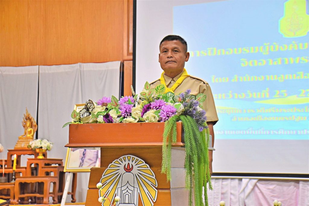 การอบรมฯในครั้งนี้ มีผู้เข้ารับการอบรม จำนวน 51 คน ประกอบด้วย ผู้อำนวยการลูกเสือโรงเรียน รองผู้อำนวยการลูกเสือโรงเรียน ผู้กำกับกลุ่มลูกเสือ รองผู้กำกับกลุ่มลูกเสือ ผู้กำกับกองลูกเสือ และรองผู้กำกับกองลูกเสือในเขตพื้นที่การศึกษาจังหวัดนครปฐม และมีคณะวิทยากรแกนนำลูกเสือจิตอาสาพระราชทานประจำจังหวัดมาบรรยายให้ความรู้และฝึกปฏิบัติ เพื่อพัฒนาศักยภาพผู้กำกับลูกเสือให้มีความรู้ ความเข้าใจในอุดมการณ์และแนวปฏิบัติที่ถูกต้อง เสริมสร้างภาวะผู้นำในการขับเคลื่อนโครงการจิตอาสาในสถานศึกษา ปลูกฝังจิตสำนึกความเป็นพลเมืองดี น้อมนำโครงการจิตอาสาพระราชทาน “ทำความดี ด้วยหัวใจ” มาใช้บำเพ็ญประโยชน์ต่อชุมชน สังคม และประเทศชาติอย่างต่อเนื่องและยั่งยืน
