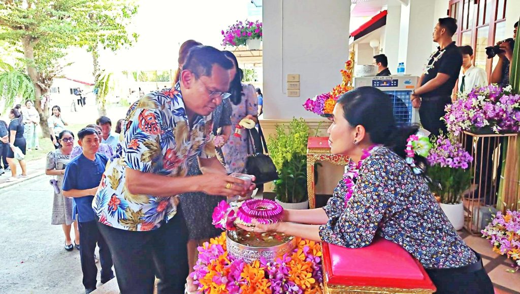 ในการนี้ ดร.วิเชียร วาพัดไทย ผู้อำนวยการสำนักงานเขตพื้นที่การศึกษาประถมศึกษานครปฐม เขต ๑ พร้อมด้วย นายสุคันธชาติ ขันศรี นายวีรยุทธ เวสา นางสาวมลฤดี คำผุย รองผู้อำนวยการสำนักงานเขตพื้นที่การศึกษาประถมศึกษานครปฐม เขต ๑ เข้าร่วมกิจกรรมสรงน้ำพระและรดน้ำขอพร นางสาวอโรชา นันทมนตรี ผู้ว่าราชการจังหวัดนครปฐม เนื่องในประเพณีสงกรานต์ ประจำปี ๒๕๖๙