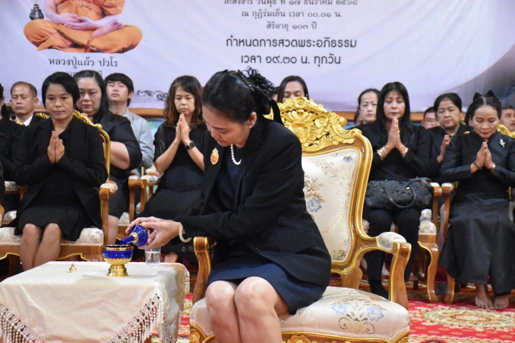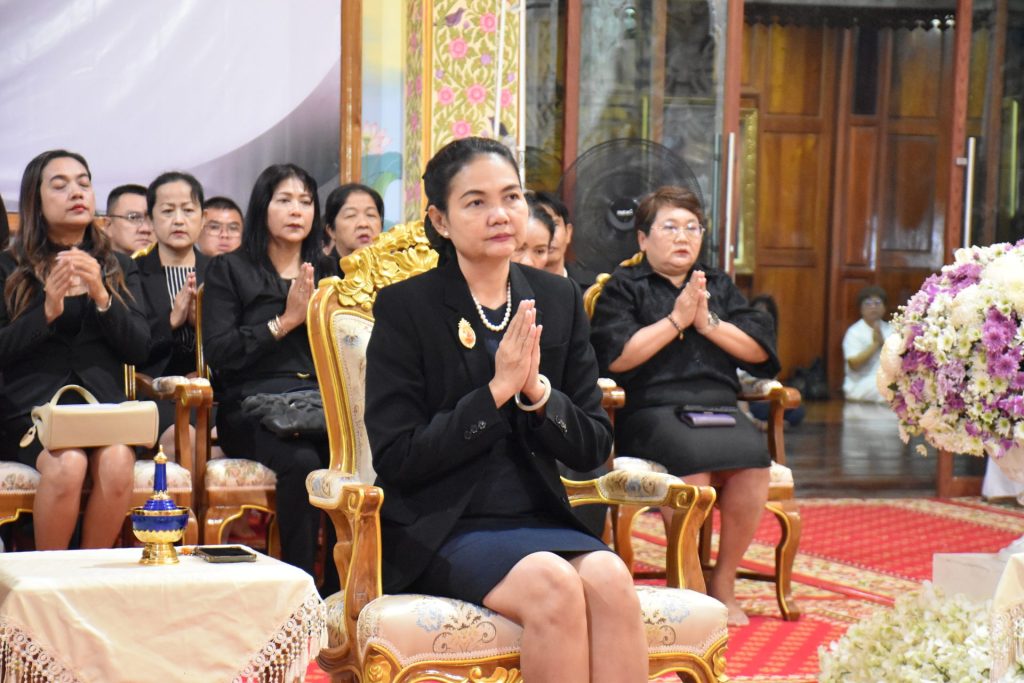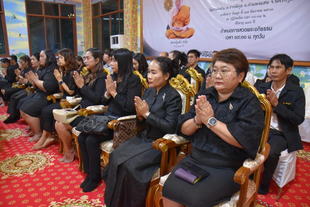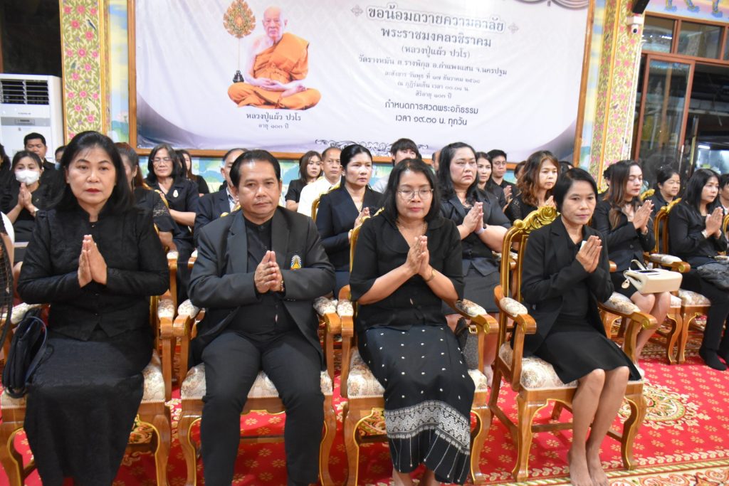 วันศุกร์ที่ ๑๙ ธันวาคม ๒๕๖๘ เวลา ๑๙.๓๐ น. ดร.ณัฎฐิกา ลิ้มเฉลิม ผู้อำนวยการสำนักงานเขตพื้นที่การศึกษาประถมศึกษานครปฐม เขต ๑ พร้อมด้วย นางสาวฐาปณี พวงงาม รองผู้อำนวยการสำนักงานเขตพื้นที่การศึกษาประถมศึกษานครปฐม เขต ๑ นำคณะผู้บริหาร ข้าราชการครู และบุคลากรทางการศึกษา ในสังกัด สพป.นครปฐม เขต ๑ เข้าร่วมพิธีบำเพ็ญกุศลสวดพระอภิธรรม แด่ พระราชมงคลวชิราคม (หลวงปู่แผ้ว ปวโร) เพื่อน้อมอุทิศถวายเป็นกุศลแด่หลวงปู่ ผู้เป็นที่เคารพรักและเป็นร่มโพธิ์ร่มไทรทางจิตใจ ณ กุฏิร่มเย็น วัดประชาราษฎร์บำรุง (วัดรางหมัน) ตำบลรางพิกุล อำเภอกำแพงแสน จังหวัดนครปฐม