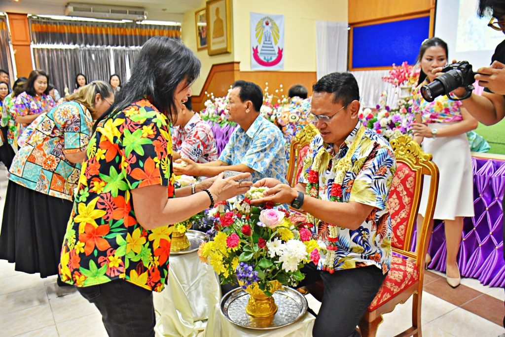 วันที่ 7 เมษายน 2569 ณ ห้องประชุมทวารวดีศรีพระประโทน ดร.วิเชียร วาพัดไทย ผู้อำนวยการสำนักงานเขตพื้นที่การศึกษาประถมศึกษานครปฐม เขต 1 พร้อมด้วย นายสุคันธชาติ ขันศรี นายวีรยุทธ เวสา นางสาวมลฤดี คำผุย รองผู้อำนวยการสำนักงานเขตพื้นที่การศึกษาประถมศึกษานครปฐม เขต 1 นำคณะผู้บริหาร ข้าราชการ พนักงาน และลูกจ้างในสังกัด สพป.นครปฐม เขต 1 ร่วมกิจกรรม”สำนักงานสุขใจร่วมสืบสานประเพณีไทยวันสงกรานต์”เนื่องในวันสงกรานต์ ประจำปี 2569 โดยมี ดร.พัฒนะ พัฒนทวีดล อดีตรองเลขาธิการคณะกรรมการการศึกษาขั้นพื้นฐาน ได้ให้เกียรติมาเป็นประธาน เพื่อสืบสานวัฒนธรรมและประเพณีไทยอันดีงาม ในเทศกาลสงกรานต์ และยังถือเป็นประเพณีวันขึ้นปีใหม่ของไทย ซึ่งมีกิจกรรมประกอบด้วย พิธีสรงน้ำพระ รดน้ำขอพรผู้ใหญ่ เพื่อความเป็นสิริมงคล ณ ห้องประชุมทวารวดีศรีพระประโทน โรงเรียนวัดพระประโทณเจดีย์ อำเภอเมืองนครปฐม จังหวัดนครปฐม
