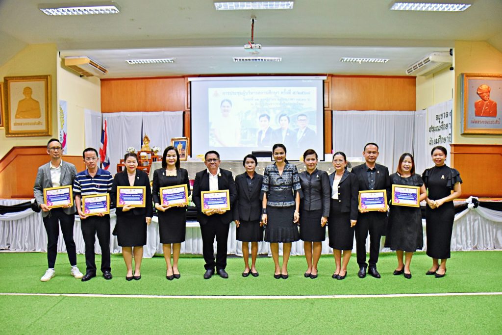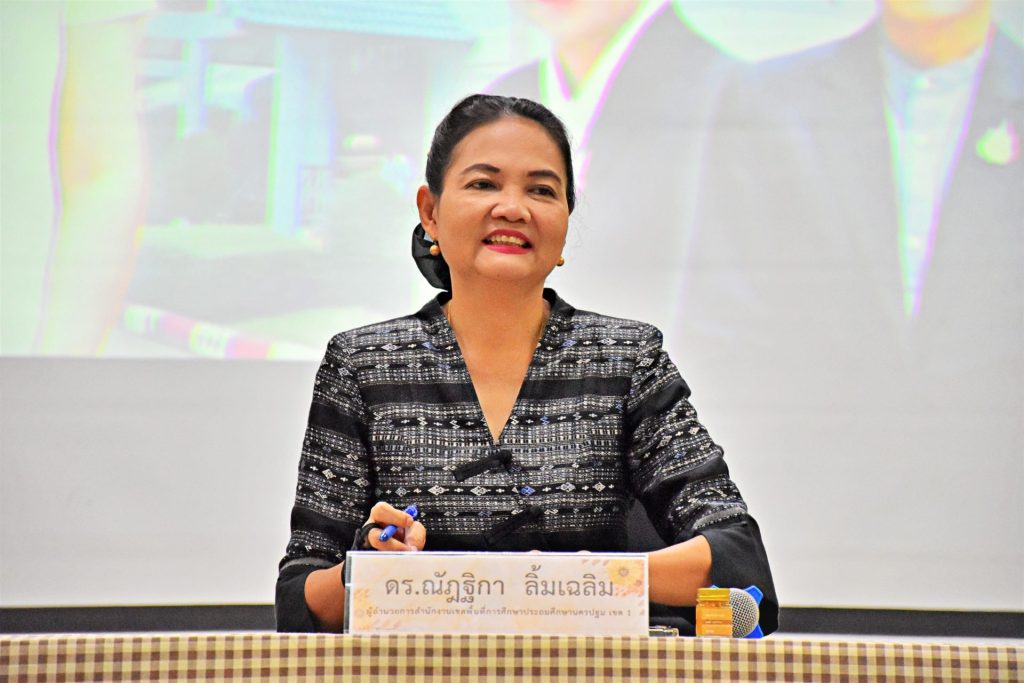วันพุธที่ 12 พฤศจิกายน 2568 เวลา 09.00 น. ดร.ณัฎฐิกา ลิ้มเฉลิม ผู้อำนวยการสำนักงานเขตพื้นที่การศึกษาประถมศึกษานครปฐม เขต 1 เป็นประธานการประชุมผู้บริหารสถานศึกษาในสังกัด สพป.นครปฐม เขต 1 ครั้งที่ 5/2568 พร้อมด้วย นางสาวฐาปณี พวงงาม และนางพิลาศลักษณ์ จงตระการสมบัติ รองผู้อำนวยการสำนักงานเขตพื้นที่การศึกษาประถมศึกษานครปฐม เขต 1 เพื่อมอบนโยบายการบริหารการศึกษา พร้อมแจ้งข้อราชการสำคัญตามระเบียบวาระการประชุมฯ ในการนี้มี ผู้อำนวยการกลุ่ม/หน่วย ผู้บริหารสถานศึกษาจำนวน 121 คน และบุคลากรทางการศึกษา สังกัด สพป.นครปฐม เขต 1 เข้าร่วมการประชุมในครั้งนี้ ณ ห้องประชุมทวารวดีศรีพระประโทณ โรงเรียนวัดพระประโทณเจดีย์ อำเภอเมืองนครปฐม จังหวัดนครปฐม