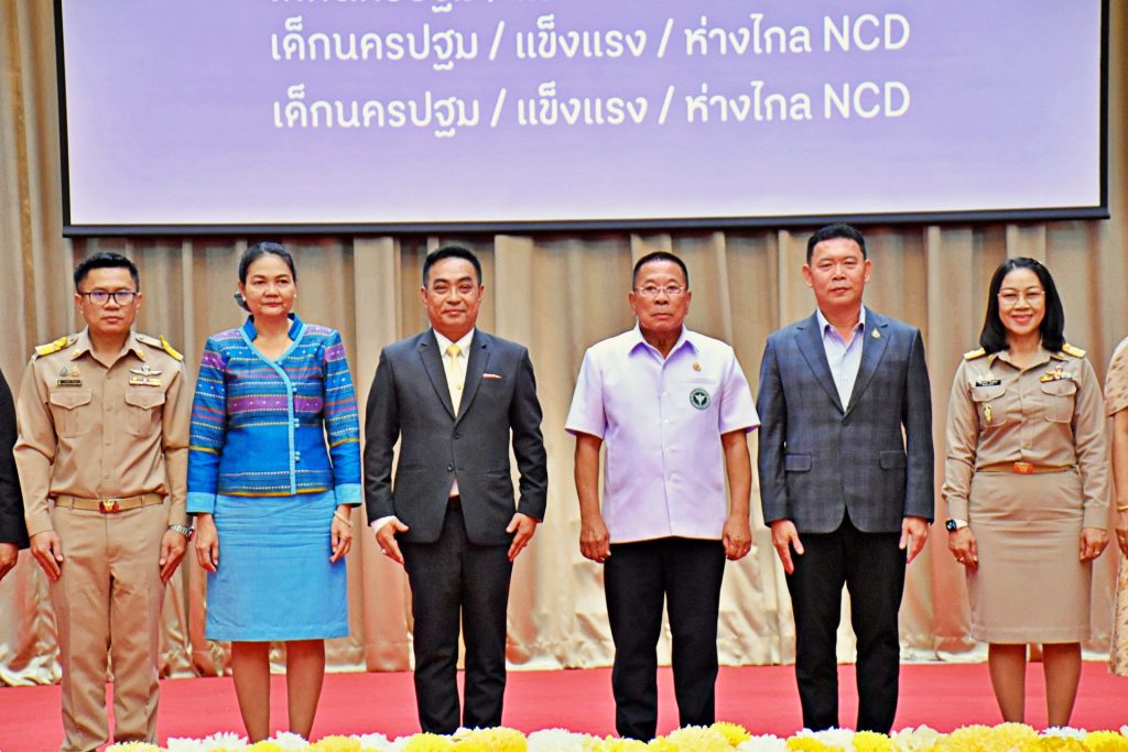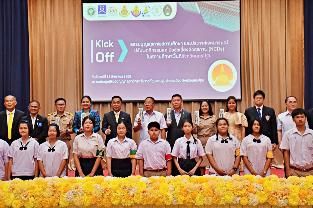วันจันทร์ที่ 18 สิงหาคม 2568 เวลา 13.00 น. ดร.ณัฎฐิกา ลิ้มเฉลิม ผู้อำนวยการสำนักงานเขตพื้นที่การศึกษาประถมศึกษานครปฐม เขต 1 พร้อมด้วย นางสาวสุกฤตภัทร ใจรื่น ผู้อำนวยการกลุ่มส่งเสริมการจัดการศึกษา เข้าร่วมพิธีเปิด Kick Off ธรรมนูญสุขภาพสถานศึกษา และประกาศเจตนารมณ์ปรับพฤติกรรม ลด ปัจจัยเสี่ยงต่อสุขภาพ (NCDs) ในสถานศึกษาพื้นที่จังหวัดนครปฐม โดย ผู้ช่วยศาสตราจารย์ สมเดช นิลพันธุ์ รักษาราชการแทนอธิการบดีมหาวิทยาลัยราชภัฎนครปฐม กล่าวต้อนรับพร้อมแนะนำมหาวิทยาลัยฯ โดยมี นายอนุชา สะสมทรัพย์ รัฐมนตรีช่วยว่าการกระทรวงสาธารณสุข เป็นประธานในพิธีเปิด Kick Off ธรรมนูญสุขภาพสถานศึกษา และประกาศเจตนารมณ์ปรับพฤติกรรม ลด ปัจจัยเสี่ยงต่อสุขภาพ (NCDs) ในสถานศึกษาพื้นที่จังหวัดนครปฐม ในครั้งนี้ ณ หอประชุมสิริวรปัญญา มหาวิทยาลัยราชภัฎนครปฐม อำเภอเมืองนครปฐม จังหวัดนครปฐม